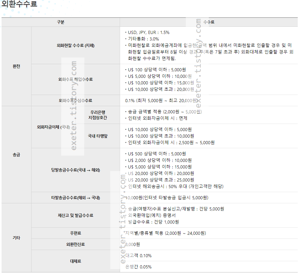 우리은행 외환 관련 수수료 안내글 입니다. (업데이트: 2021년 6월 11일)