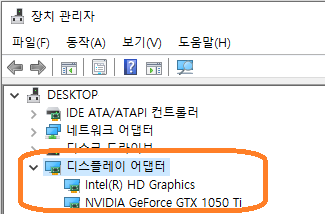 - 제어판 장치 관리자에 디스플레이 어댑터로 해당 GPU 설치 상태 확인함