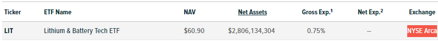 정식 명칭은 'Lithium & Battery Tech ETF'이고, 티커는 LIT입니다