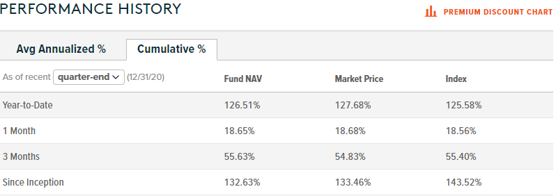 지금까지의 펀드(ETF) 성과를 보면, 설정 이후로 약 133 % 수준의 누적 이익률을 보이는 것 같습니다.
