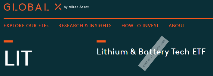 Global X Lithium & Battery Tech ETF (LIT)는 금속 채굴 및 정제부터 배터리 생산에 이르기까지 전체 리튬 사이클에 투자합니다. LIT는 리튬 채굴, 리튬 정제 및 배터리 생산과 관련된 광범위한 회사에 대한 효과적인 투자가 가능하며, 이 펀드는 리튬 및 배터리 기술에 대한 테마형 ETF라 볼 수 있습니다.