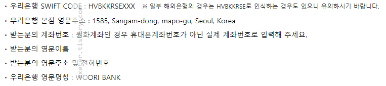 해외에서 우리은행으로 송금하는 경우 아래 정보를 참고하세요.