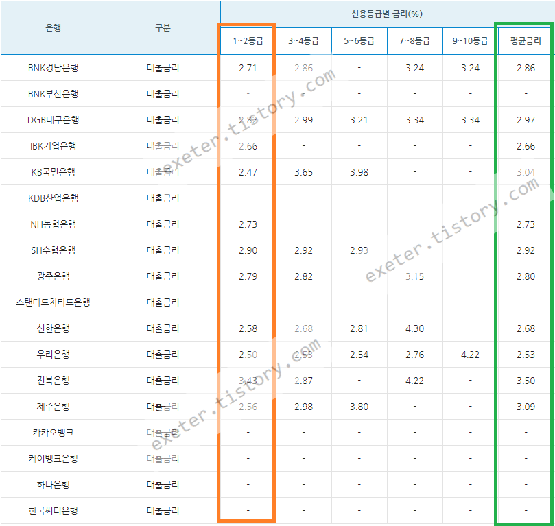 본 게시글은 신용등급에 따른 시중은행 주택담보대출(일시상환) 금리 비교입니다.