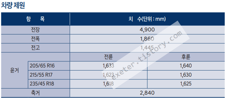 타이어 형식: 205/65 R16, 215/55 R17, 235/45 R18