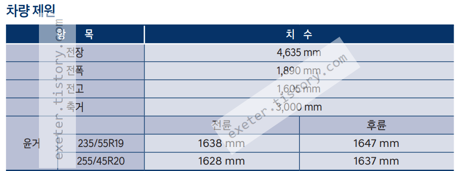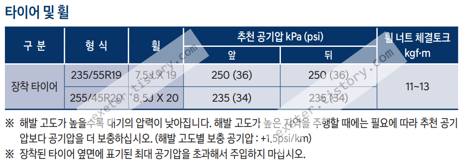 - 타이어 형식: 235/55 R19, 255/45 R20