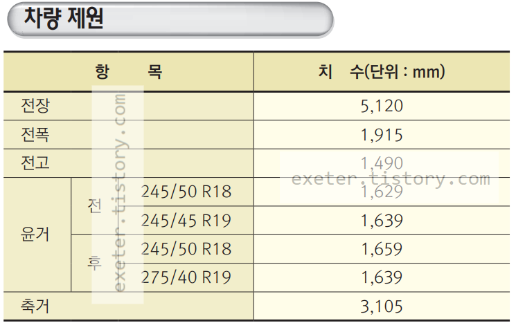 타이어 형식: 245/50R18, 245/45R19, 275/40R19
