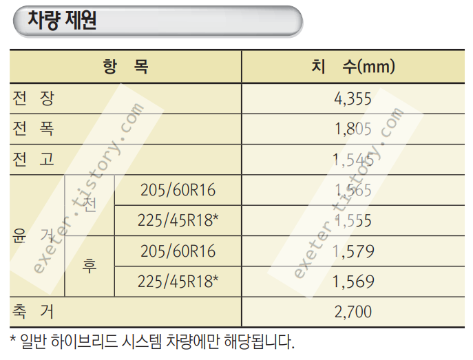 타이어 형식: 205/60R16, 225/45R18