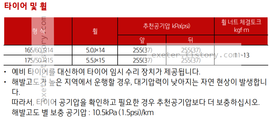 타이어 형식: 165/60 R14, 175/50 R15