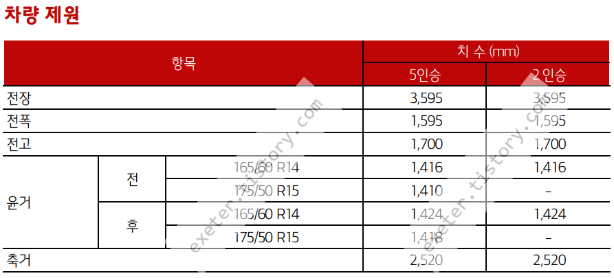 참고로 레이 차량 크기 및 타이어 제원은 2022년형 및 2020년형이 상호 동일합니다.