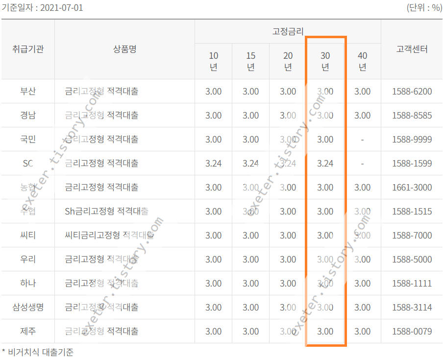 비거치식, 대출 상환기간 30년 기준, 대부분의 시중 대형은행에서 약 3.0%의 금리를 안내하고 있습니다.