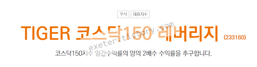 - [TIGER 코스닥150 레버리지]는 대한민국의 '코스닥 150'을 기초 지수로 하여 수익률 2배를 추구하는 레버리지\ ETF임