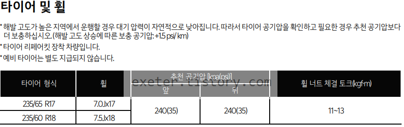타이어 형식: 235/65 R17 , 235/60 R18