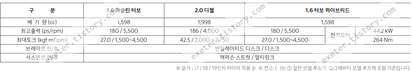 본 게시글은 2022 스포티지 하이브리드 (5세대) 차량 성능 사양(배기량/출력/토크) 및 연비 정보로, 작성일 기준 기아 홈페이지에서 발췌한 것입니다.
