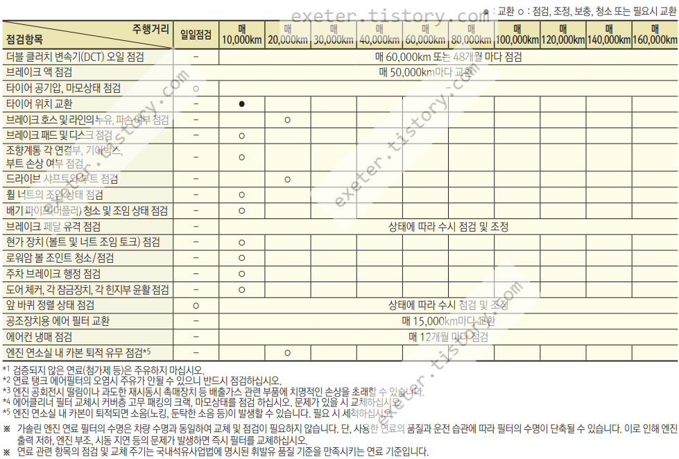 - 더블클러치(DCT) 오일점검: 매 60,000km 또는 48개월 마다 점검