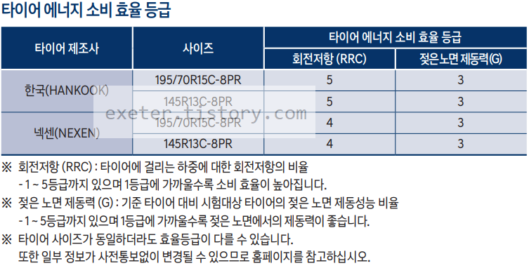 <2020 포터2 일렉트릭 타이어 제조사별 에너지 소비 효율 등급>