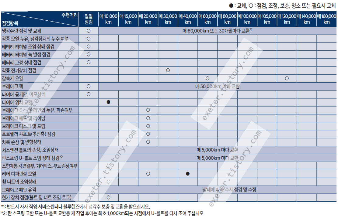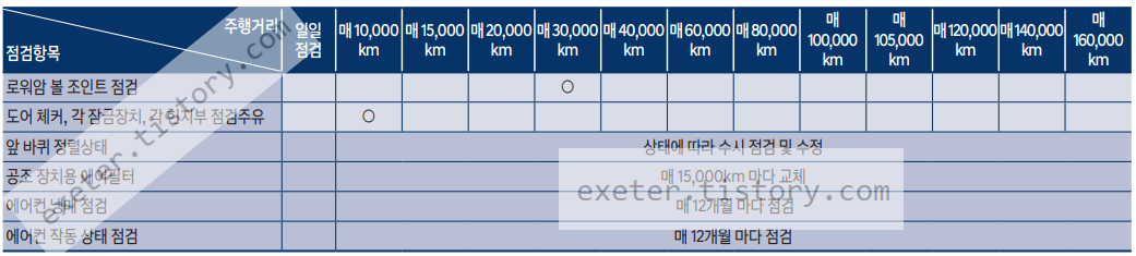 - 리어 디퍼런셜 오일: 매 2만 km 점검, 매 4만 km 교환