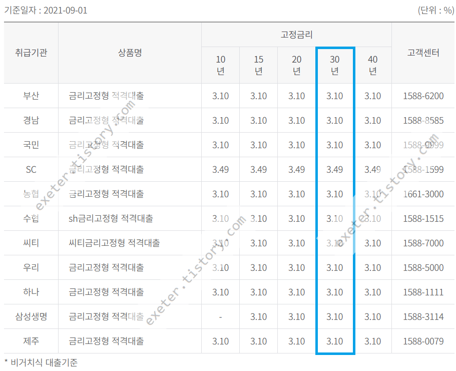 비거치식, 대출 상환기간 30년 기준, 대부분의 시중 대형은행에서 약 3.1 %의 금리를 안내하고 있습니다.