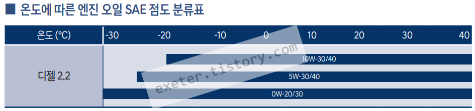 (디젤) 엔진오일 점도 분류표