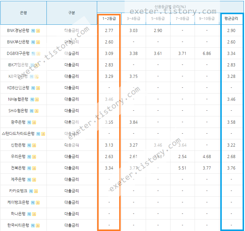 본 게시글은 신용등급에 따른 시중은행 주택담보대출(일시상환) 금리 비교입니다.