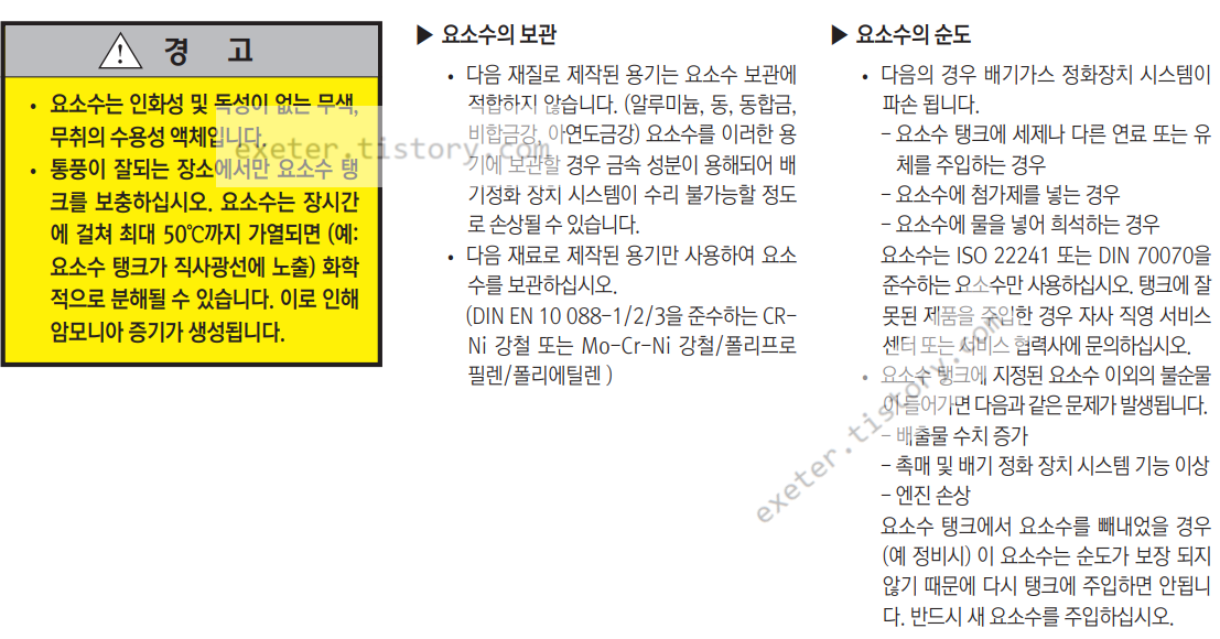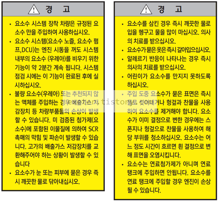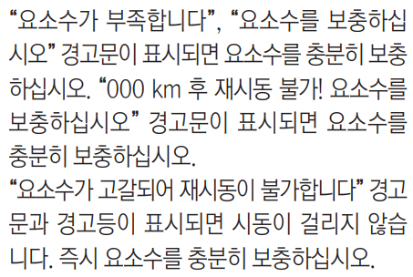 - 요소수 관련 경고
