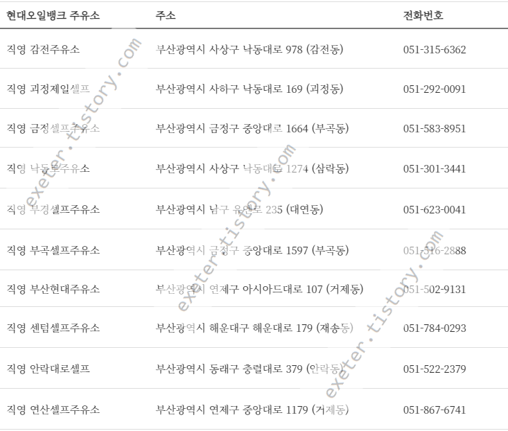 부산 직영 현대오일뱅크 주유소 목록 (이미지)