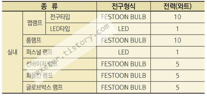 < 전구 용량/형식/전력(와트) >