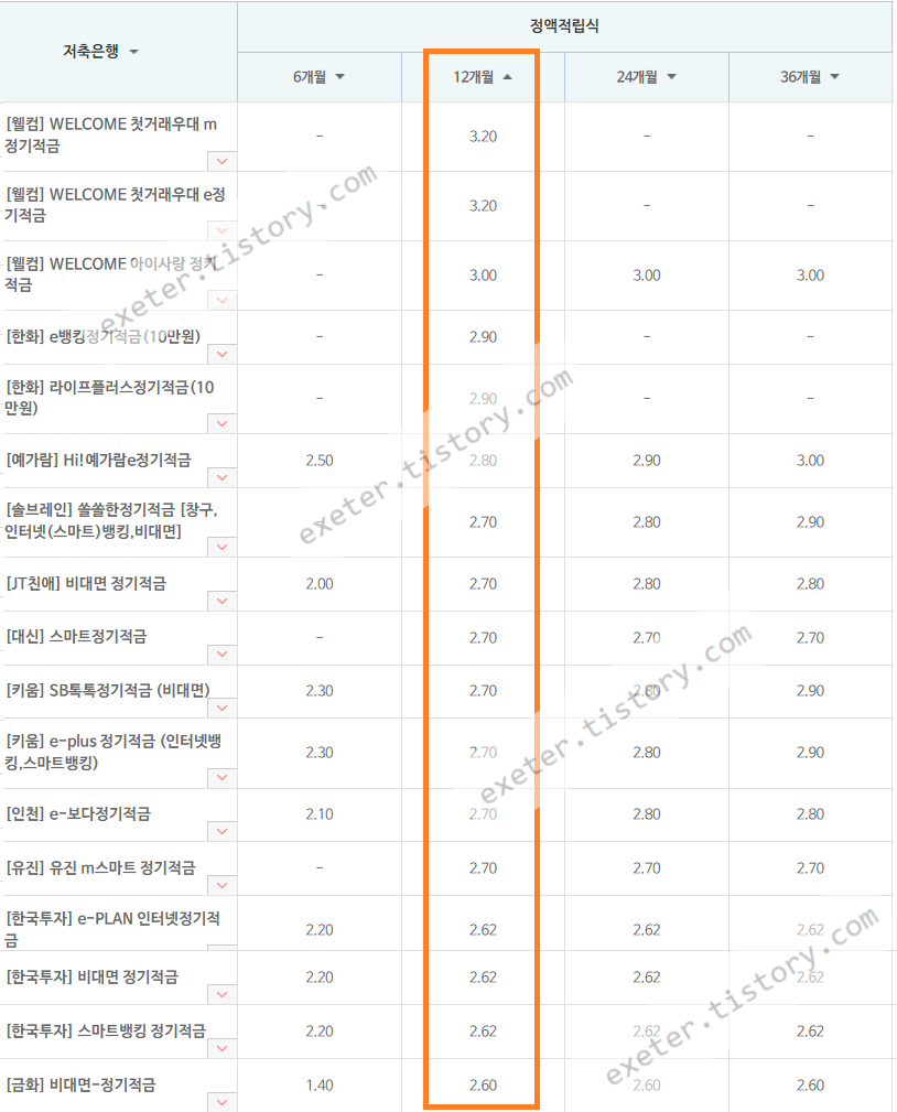 *해당 금리 정보는 작성자의 판단으로 가공한 정보이므로 실제 가입 가능 여부/조건은 해당 은행으로 문의하시기 바랍니다. (일부 조건이 있는 상품은 별도로 추가 표시)