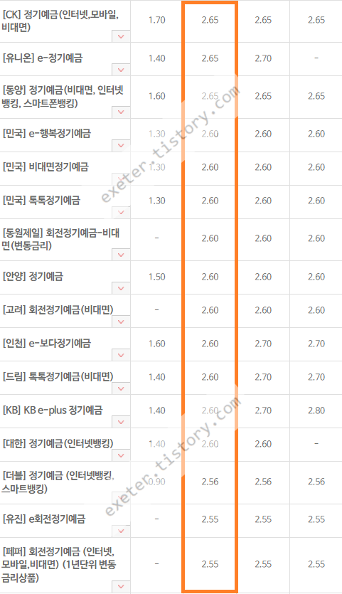 따라서 아래에 제시한 대부분의 상품은 특별한 조건 없이 비대면 및 인터넷(스마트폰) 으로 가입시 제공되는 금리 조건입니다.