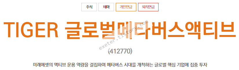 ETF 명칭: 미래에셋TIGER 글로벌메타버스액티브증권상장지수투자신탁(주식)