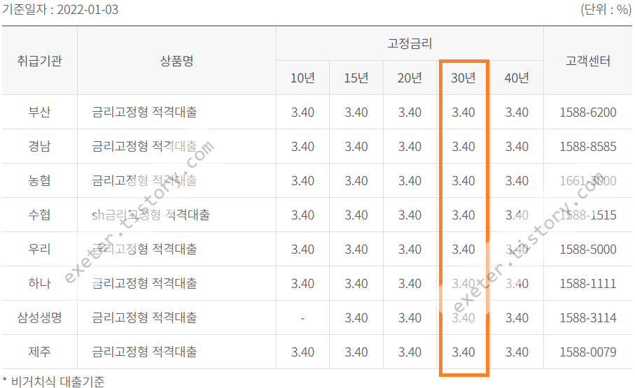이번 2022년 1월에는 작년 하반기 대비 취급은행이 증가하였습니다. 또한 최근에는 적격대출에도 40년 고정금리 상품이 추가되었습니다.