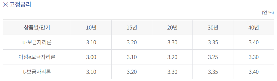 금리 안내 (u-보금자리)