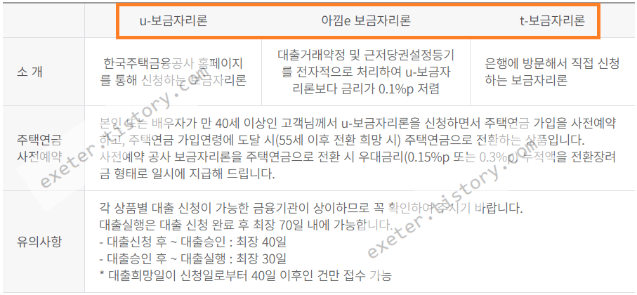 한국주택금융공사 보금자리론 3종류 (u-보금자리론/아낌e 보금자리론/t-보금자리론) 에 대하여 핵심 요약 내용입니다.