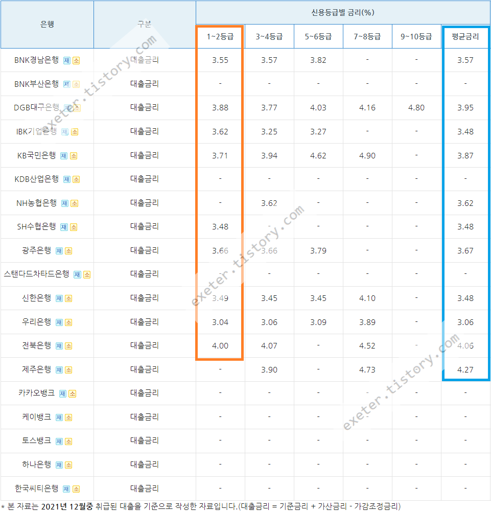 | [신용대출] 2021년 12월 기준 일반신용대출 금리 비교 (0) | 2022.01.20 |
