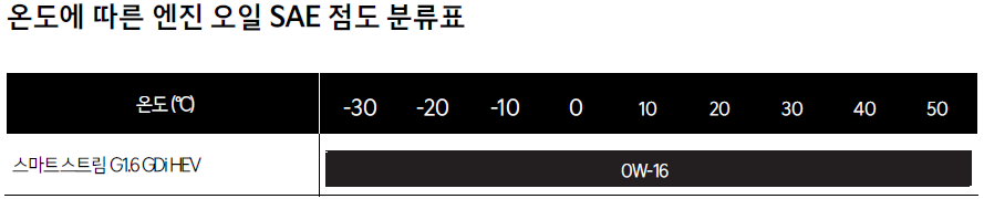 스마트스트림 G1.6 GDi HEV 엔진: 0W-16