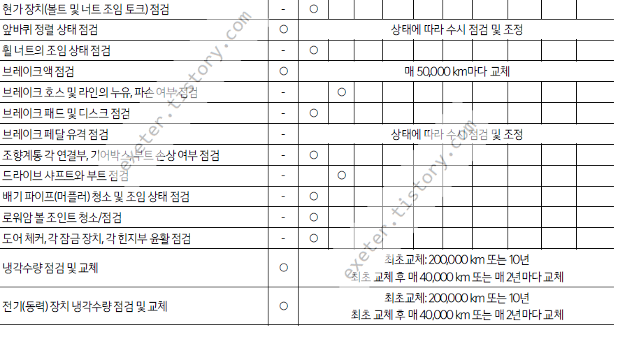 - 브레이크 액: 매 50,000 km마다 교체