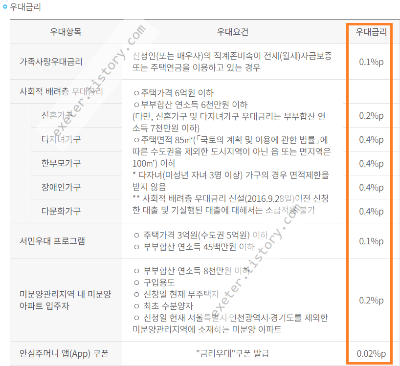 - 다자녀가구 : 미성년 자녀가 3명 이상인 경우 부부합산 연소득 최대 1억원 이하