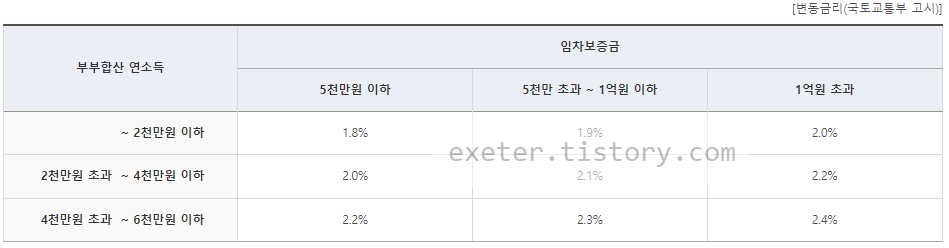 - 대출대상: 부부합산 연소득 5천만원 이하, 순자산가액 3.25억원 이하 무주택 세대주