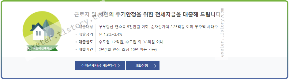- 대출한도: 수도권 1.2억원, 수도권 외 0.8억원 이내
