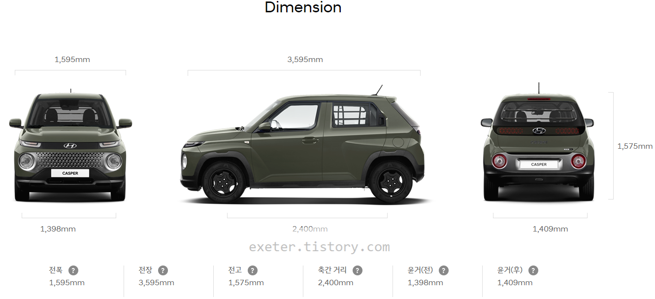 캐스퍼 크기 사양 (Dimension)