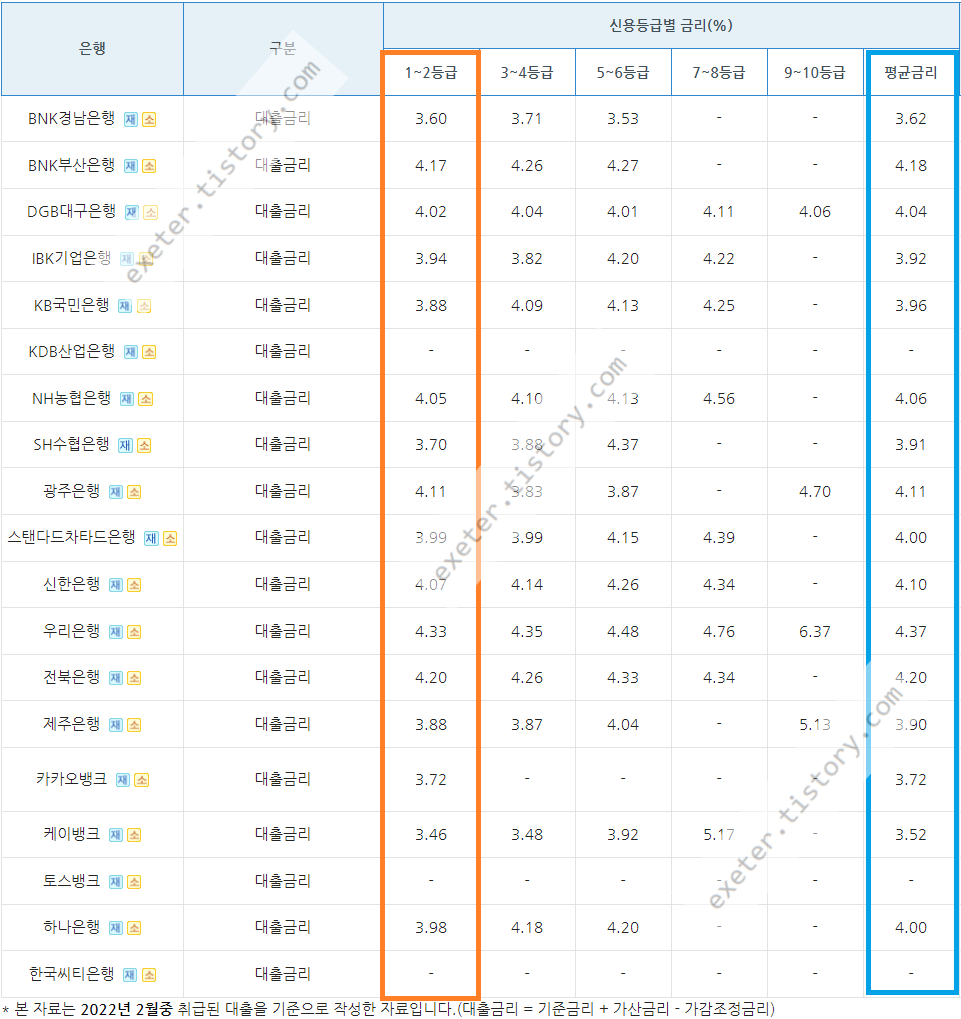| [신용대출] 2022년 2월 기준 일반신용대출 금리 비교 (0) | 2022.03.25 |