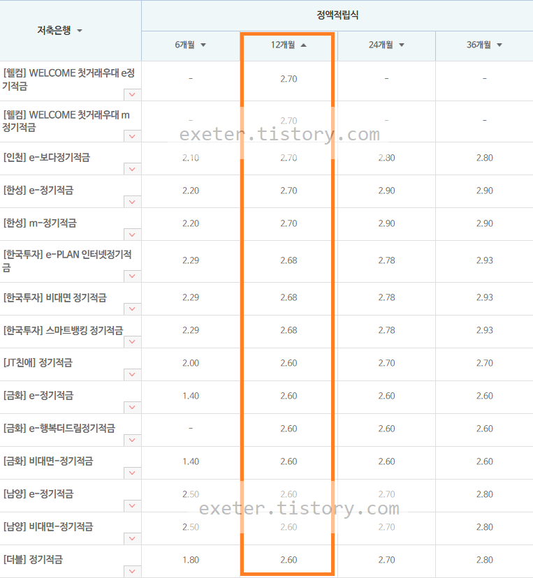 *상기 목록은 작성자 개인 판단으로 가공한 정보이므로 실제 가입 가능 여부/조건은 해당 은행으로 문의하시기 바랍니다.