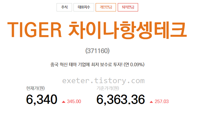 - [TIGER 차이나항셍테크(371160)]는 국내 시장에 상장되어, Hang Seng TECH 지수를 기초자산으로 중국 기술주에 투자하는 국내 상장 해외투자 ETF임