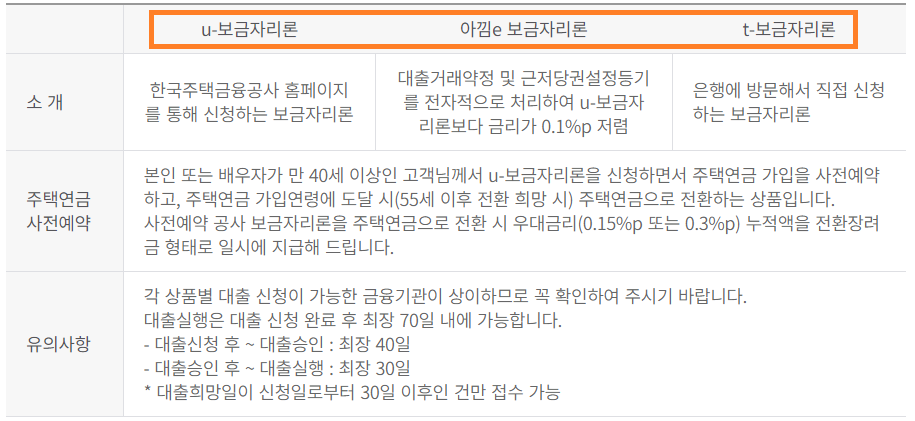 한국주택금융공사 보금자리론 3종류 (u-보금자리론/아낌e 보금자리론/t-보금자리론) 에 대하여 핵심 요약 내용입니다.