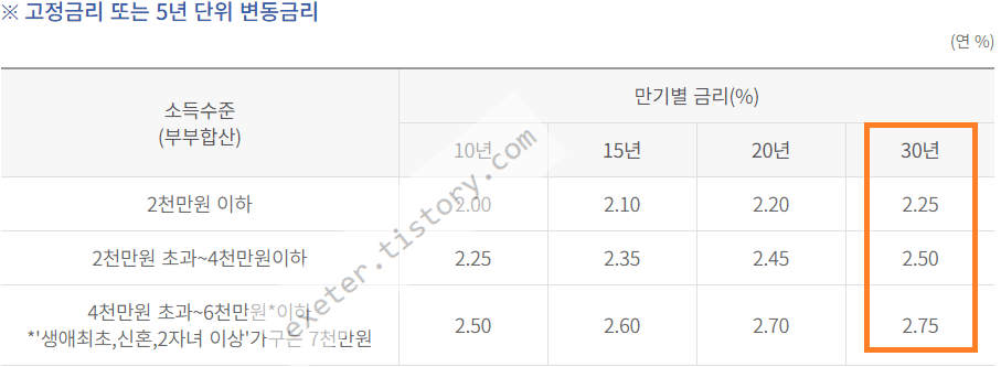 - 대출기간 : 10, 15, 20, 30년