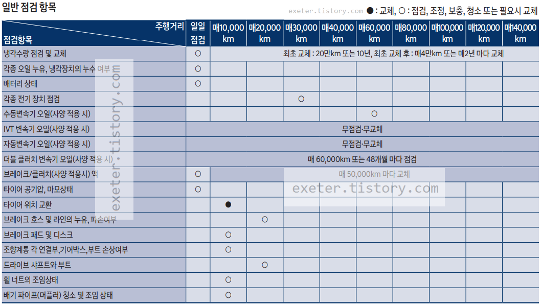 - IVT 변속기 오일(사양 적용 시): 무점검·무교체