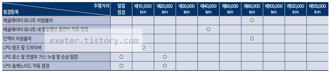 - 밸브 간극 점검, 조정(1.6 LPI)*2: 매 90,000km 또는 72개월 마다 점검 및 조정