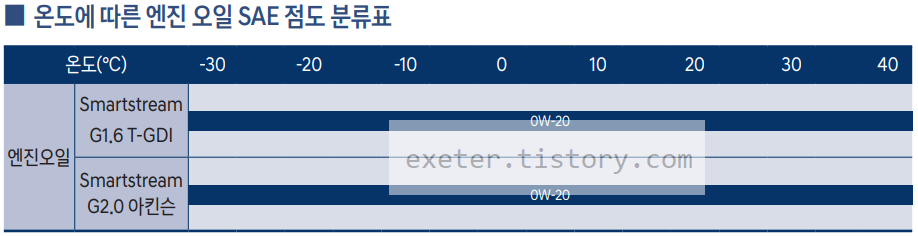 1.6 T-GDI / 2.0 아킨슨 엔진: 0W-20