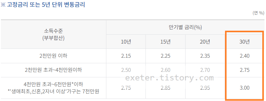 - 대출기간 : 10, 15, 20, 30년