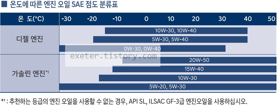 엔진오일 점도 분류표