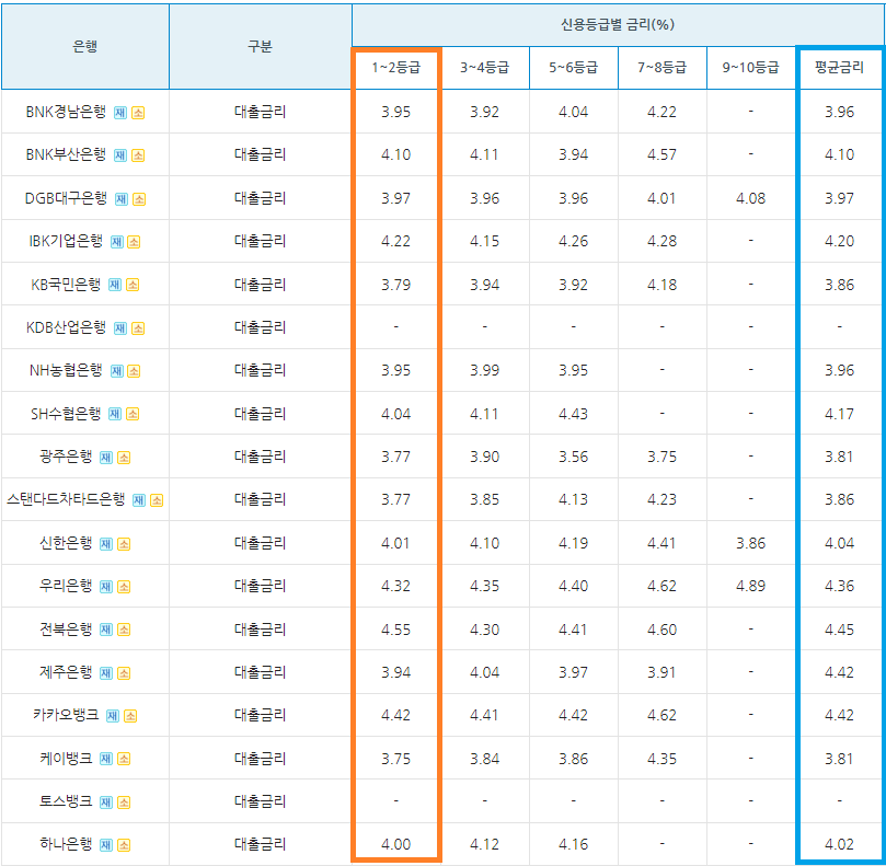 본 게시글은 신용등급에 따른 시중은행(1 금융권) 주택담보대출 금리 비교입니다.